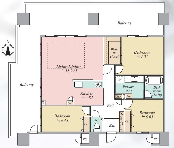 | 間取り | 3LDK(洋9・洋6.4・洋6・LDK22) |