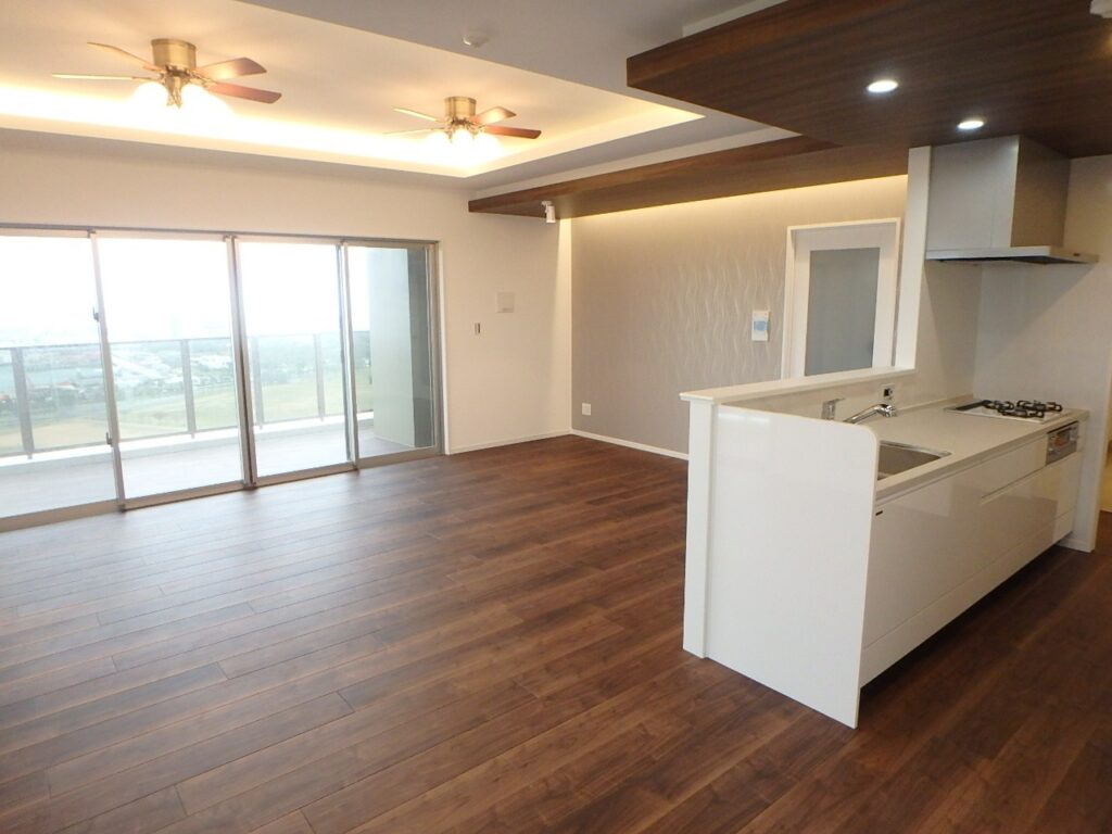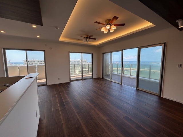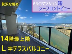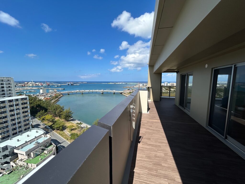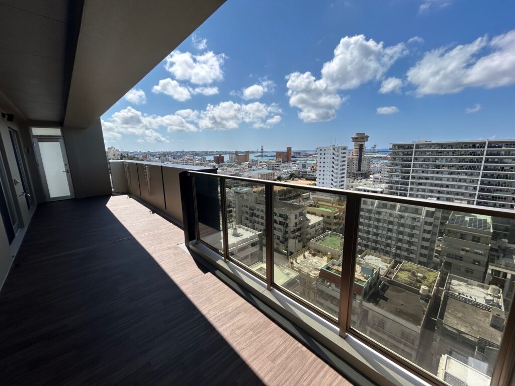 那覇市曙3丁目、地上14階建の最上階・角部屋に位置する開放感あふれる3LDK。 専有面積100.55㎡、LDK約22帖のゆとりある住空間に加え、61.17㎡のワイドバルコニー付き。 海を望む眺望と日当たりの良さが魅力のハイグレードレジデンスです。