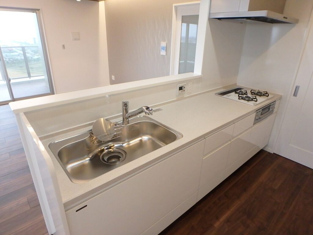 - 対面式システムキッチン・3口ガスコンロ付き
